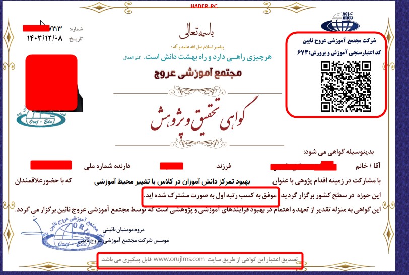 و هیچ مدرکی از طریق فتوشاپ و دستکاری مدارک سایر همکاران تهیه نشده است
